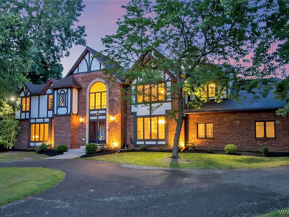 Stunning curb appeal greets you at this 3852 sq ft custom-built Traditional Tutor situated on 4.54 aces in a prime Clarence location. The gorgeous all brick exterior is accented by HardiePanel Stucco & a lg concrete patio overlooking the serene wooded backyard. Roof 2008 w/35-yr shingles. The grand front entrance leads to the bright & airy 2-story foyer with a sweeping staircase & crystal chandelier. The foyer leads to the lg living room & dining room with plenty of natural light. The family room features WBFP & recessed lighting. Lg eat-in kitchen has plenty of cabinets & counter space. The 1st floor also features 1/2 bath & laundry. The 2nd floor features the primary bedroom w/ensuite bath w/shower & lg tub, lg walk-in closet, & 2 additional bonus rooms. Also on the 2nd floor, are 3 generously sized bedrooms, & additional full bathroom w/shower & lg tub. Basement features 8’ ceilings, a partially finished room w/WBFP, 1/2 bath, & egress steps to lg 3.5 car garage. Home was built w/3 story elevator shaft prepped for future elevator. Do not miss out on this well-maintained one owner magnificent home! Open house Sat 7/29 11-1 & Sun 7/30 1-3. Any offers are due by Wed 8/2 @ 11:00 am.