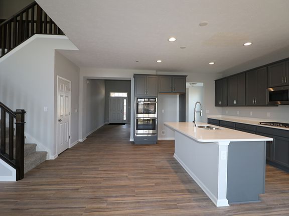 This home expands over 2 stories and features 4 bedrooms, 2.5 bathrooms, and a 3-car garage. As you enter the home through the owner’s entry, you will discover a powder room, a mud room, and a flex room. When stepping into the 4' extended gathering room, you will find the stacked stone fireplace, reaching from floor to ceiling. The kitchen includes stainless steel GE® appliances, a large center island, and lots of cabinets. Upstairs there are 3 secondary bedrooms, a full bath, and a laundry room. The owner’s suite is secluded and spacious. The owner’s bathroom includes a sizable double-bowl vanity and a lovely tiled walk-in shower with a seat. The closet of your dreams is through the bathroom with plenty of room for your wardrobe.