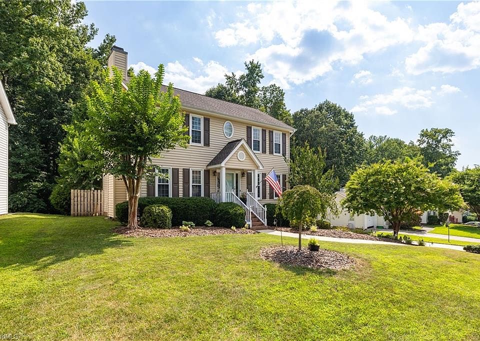 Welcome home to this beautifully updated home in Fox Hollow tucked away in a cul-de-sac! Fully renovated designer kitchen re-do w/custom cabinetry, granite tops, stone back-splash, SS appl, beautiful laminate flooring throughout entire home, fresh neutral paint, crown molding, updated lighting fixtures & vanities in baths, primary bath re-do with separate walk-in tile shower, soaking tub & dual vanity giving you a large & spacious primary suite & energy efficient replacement windows. Large den w/cozy gas log fireplace, a formal dining room, currently used a formal living, providing versatility to meet your needs.The partially finished BASEMENT gives extra flex space for exercise/storage. Large fenced in backyard with fire-pit, 2-tiered deck, updated landscaping surrounded by trees give tons of privacy. Conveniently situated to I73/40, Piedmont International Airport, Downtown Greensboro, minutes to shopping/restaurants & parks.