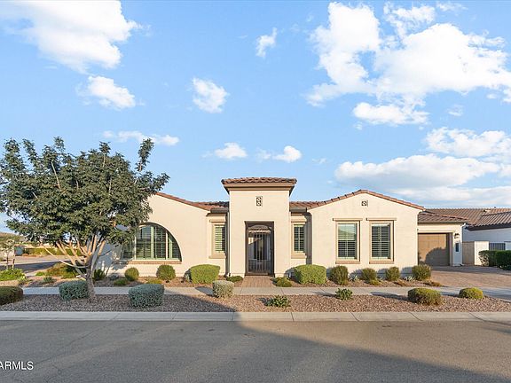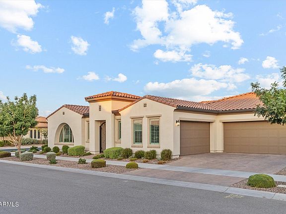 Here is your opportunity to own this spectacular property tucked behind the gates of ''The Estates at Eastmark''. Pristine in every way and built by Shea in 2020. Checking all boxes this single level home features 4 bedrooms plus den, 3.5 baths, a sparkling pool, and a FOUR car garage. You will enter the residence through the private gated courtyard.