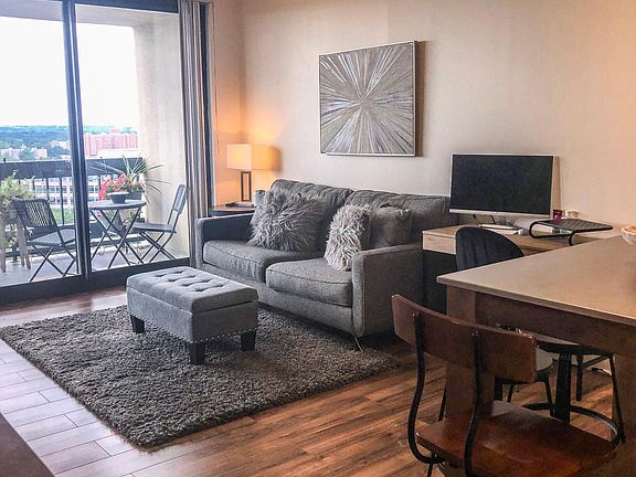 Please schedule showing online. When you arrive park in visitor, pick up key at front desk. You will need ID and license plate number. Large and bright natural light flooded living room dining combination with laminate flooring throughout. Wall wide window with sliding glass door to large balcony with panoramic DC views. Big bedroom with walk in closet & second closet space. Building amenities include pool, terrace, party room, library, exercise room, billiard room and more. 24 hours Front Desk and Security. Great location with public bus stop at entrance of property; just minutes to Pentagon, DC, Old town Alexandria, Reagan national airport, National Harbor. Close to shops, restaurants, parks, etc.