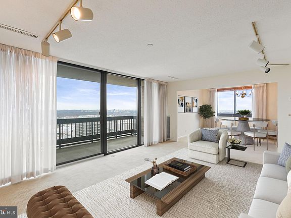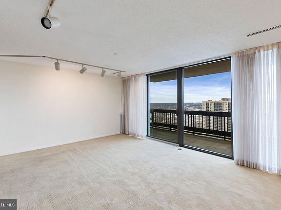 Open house Sunday 1-3PM*Fabulous rarely available top floor corner luxury 3 bedroom condo with amazing views of Washington and Northern Virginia from every window. Plus 2 car garage parking. Bright and open floor plan with a huge balcony to enjoy the views & relax! Freshly painted! Updated kitchen with 42" cabinets, wall pantry with pull-out drawers, breakfast nook and butlers pantry with glass front cabinets. Living room with floor to ceiling windows overlooking the fabulous views and opens to dining room with picture window. Wonderful primary bedroom with two walk-in closets with organizers and updated luxury bath with soaking tub, dual vanities and separate shower plus heat lamp. Very spacious second bedroom with walk-in closet with organizers. Great size third bedroom with ample closet space. Laundry Room with full size washer & dryer, cabinets & wet sink: Dual heat pumps replaced in 2016 & Nest thermostats.. There is also a additional storage bin on the garage level. Skyline Square offers a elegant lobby with 24 hour concierge service, large pool, exercise room, steam & sauna facilities, party room, library, game room and more. Walk to shopping and fine restaurants. Great location within a few miles of the Pentagon, Amazon's National Landing HQ2, National Airport, Shirlington, Alexandria Old town and so much more! Gracious living and a carefree lifestyle plus amazing views!!