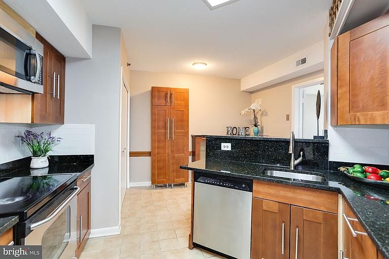 Beautiful *ACADIA*Model w/ double balcony & 2 gar. sp.! **Newer Kitchen Cabinets, SS kitchen appliances. **Brand New: granite C/tops, backsplash/ wood flooring in the LR/ carpet in both BRs, Doors/ BR Vanities/light fixtures. Awesome location, Mins. from Shirlington, Crystal City, Old Town/Walking distance to the shopping center, restaurants, etc!