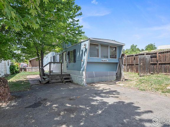 Retro Mobile Home in Unincorporated Boulder, in the San Lazaro Mobile Home Park. Built in 1959, this home features unique architectural design significant to the 1950's making it so charming! This home needs a complete renovation before it can be lived in, making it a blank canvas for your creativity. DIY enthusiasts, this property holds incredible potential. This opportunity creates affordable entry into the Boulder real estate market with low lot rent and easy commute into the heart of Boulder or the mountains. Lot rent is $885 per month and the community has a pool and playground. This home is on a corner lot and next to open space, with shady trees and off street parking. Don't miss out on this chance to own a piece of Boulder at an unbeatable price. Reach out today to schedule a viewing and start planning your renovation! Cash only, sold as is. Dogs allowed in the community. Home must be owner occupied.