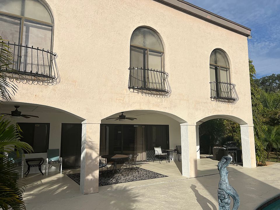 This Pool House is a Spanish style two story home situated behind the private pool, with its own tropically landscaped yard. Located upstairs is the private bedroom and game/common room. The house is completely private with its own washer/dryer, fireplace, jacuzzi bathtub, and all kitchen necessities. Landlord is responsible for all utilities, cable/wifi, and trash pickup services. Tenant is responsible for blowing off pool deck and keeping the pool clean as needed (1-2 times per week at the most). Landlord is also responsible for all lawn maintenance and upkeep.