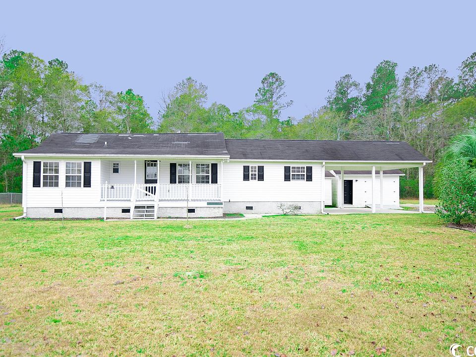 This house has two bedrooms and two baths on a .53 acre lot.  Lot #8.  It has a nice covered front porch and rear deck.  It also has a carport and two storage units which convey with the property. Carport. 20’ 6” x 19’ 6”.  The property has also been permitted for nine lots which will eventually have stick built  or mfg homes built on them.  The lots do not convey with this sale.  The roadway will be reconfigured when lots are constructed. The plat is in associated documents.  Call the listing agent for the house code or with questions.  Please see personal interest disclosure in documents.