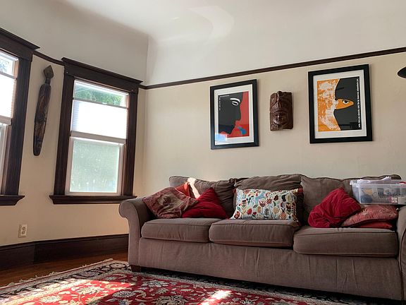 Victorian 2+ bedroom 2 bath (plus a bonus room could be the 3rd bdrm), ready for move in with washer/dryer, newer appliances (gas stove, refrigerator, microwave) and dishwasher. 1 off-street parking space. Walking distance to park, community gardens, Doyle Cafe, and near public transportation. Access to backyard. House is partially furnished with sofas, king size bed, 2- sofa beds, dining room table, bookshelves, area rugs and kitchen appliances. Tenants below travel often yet when home enjoy coming home to a quiet facility. They take the Emeryville's free shuttle to and from BART. Parked at street parking. Street sweepers comes once a month so short travel periods isn't an issue. We've never had any issues with street parking other than at times having to park 3-4 houses away. Sublease (Flexible 9months-12 months), partially furnished, utilities included