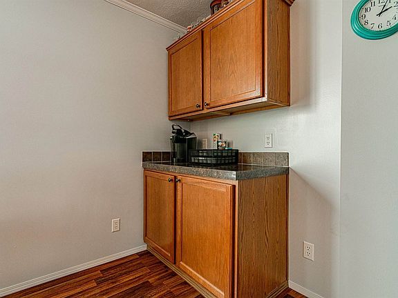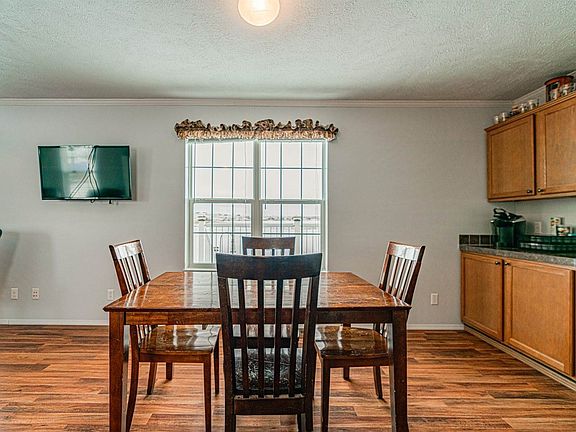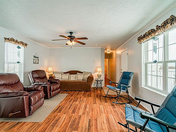 Enjoy life on the Lake! This property features a 2014 3 bed, 2 bath manufacture home on concrete piers. The exterior is set up to enjoy the outdoors. Enjoy this lake property's very large stamped cemented patio with benches, lighting and outlets hardwired in. You'll find a 12 by 20 garage to store all of your lake gear in and a large crushed rock driveway with camper hook ups. A retaining wall around the driveway and yard protects the drain field and adds character to the property. The back of the house has an 8 by 32 deck facing the beautiful view of the lake. There is also a 16 by 32 stamped concrete patio with fire pit to enjoy those summer evenings. Trees were planted in 2012, metal roof put on the home in 2018, and new gutters in 2020. There is an annual rental fee on a 5 year lease but the lot is available to be purchase.