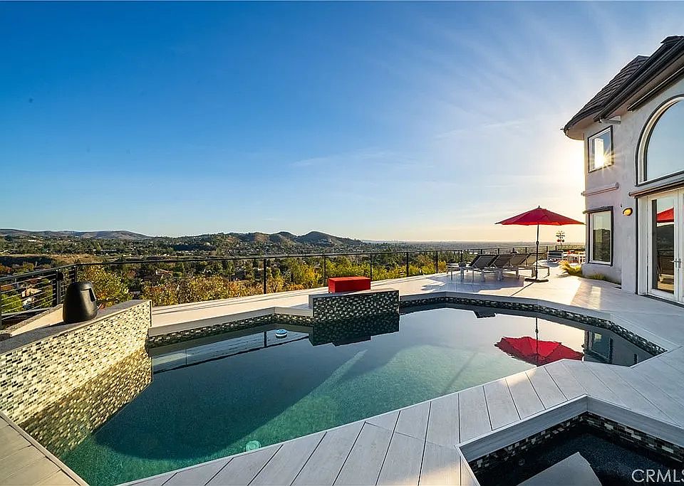 *SPECTACULAR VIEW VIEW VIEW IN THIS ONE-OF-A-KIND CUSTOM-BUILT HOME IN THE GATED COMMUNITY OF CREST DE VILLE*The Cul De Sac Location & Private Gated Courtyard Are An Extra Bonus To This Magnificent Home! Thoughtfully Designed, This Home Offers Modern Elegance W/ An Artistic Flair To Surely Impress! Stately Etched Glass Double Door Entry Opens To The Foyer, Offering Astonishing Views & An Abundance of Natural Light. Spacious Family Room W/ Custom Concrete Fireplace, Lava Tiled Flooring, & Surround Sound Makes This The Perfect Room For Family Gatherings. Chef's Dream Kitchen Features Custom Built White Cabinetry W/ Granite Countertops, Monogram Ovens, Sub Zero Refrigerator, 2 Dishwashers, 2 Drawer Refrigerators, HUGE Center Island With Seating All Overlooking The Outdoor Patio with Breathtaking VIEWS! The Exquisite Formal Dining Room W/ Surrounding Windows Will Captivate Your Guests As They Enjoy the Remarkable City Light VIEWS! Majestic Formal Living Room W/ High Ceilings & Custom Built-Ins Featuring The Most Phenomenal VIEWS! Main Level Primary Bedroom Is Simply Astonishing, Featuring High Ceilings, a Large Walk-In Closet & Gorgeous Windows Overlooking The Pool With Mountain And City Light VIEWS! Primary Bath Offers Walk-In Shower With Remarkable One Of A Kind Etched Glass Doors Signed By An Artist, Free Standing Tub, Dual Counters & Beautiful Cabinetry. The Front Powder Room Features A Custom Porcelain Tiled Wall To Impress Your Guests. The Large Laundry Room Offers An Abundance Of Cabinetry for Optimal Storage, Large Stone Countertops W/ A Custom Tiled Wall & and a Utility Sink. The Back Staircase Takes You To A Private Media room With a Projector & Built-In Entertainment Cabinet With A Large Screen, Bar Area W/Refrigerator, & Sink. Around The Corner Sits Your Work-Out Room! The Extraordinary Plexiglass Spiral Staircase Leads You To The Upper Level, Offering A Second Primary Suite W/ Wood Flooring & A Walk-In Closet. Bath Features Tub/Shower Combo & Sink W/ Marble Counters. Two Additional Bedrooms Share A Balcony To Enjoy The Amazing City Light VIEWS. Also Shared Is A Large Bath W/ Dual Sinks And A Walk-In Shower. So Cal Living At Its Finest As Your Family & Friends Enjoy This Truly Incredible Wrap Around Back Yard Offering the Most Spectacular VIEWS, Pebble Tec Pool & Spa, Built-In BBQ W/ Gas Burners, Tyvek Decking W/Iron Post & Wire Fencing. Also includes but is Not Limited To External Electric Shades, 2 New A/C Units, and 220 For an Electrical Car.