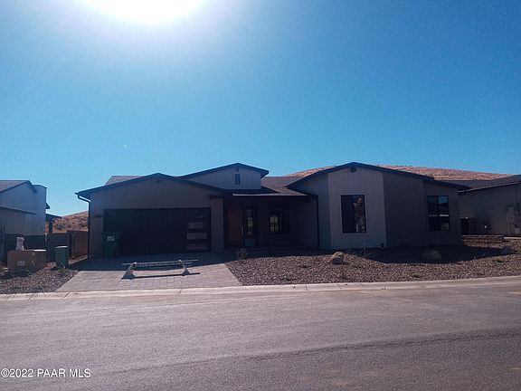 Perfect ''702 Plan'' new build with SOLAR by Mandalay Homes! This home features a vaulted ceiling, gourmet kitchen, & fireplace to create a stunning greatroom. Energy-efficient 3 Bedrooms 2 Bathrooms & Den/Dining (or a possible 4th bedroom) plan. Owner's suite features a pop-out sitting room, large walk-in closet, and popular walk-in shower. Oversized covered patio and 3-car tandem garage for all your outdoor needs. VIEWS from your backyard will have you outdoors and enjoying the perfect weather Prescott offers you. Interior finishes are beautiful! Wood-look tile in all the right places. The kitchen features a walk-in pantry and white shaker cabinets with gorgeous granite countertops featuring a beautiful full tile backsplash. Enjoy low utility bills & eligible tax rebates!