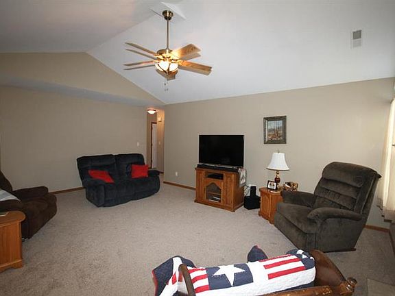 Great slab home located on a corner lot. Features include new carpet throughout, gas fireplace and vaulted ceilings in living room, and an Irrigation system! The laundry room is conveniently located next to the bedrooms. Huge Master bedroom suite with a walk-in closet and dual sinks in the Master bathroom. Garage has a built in workshop with John Deer doors with heat air!