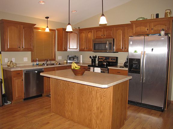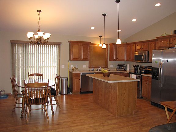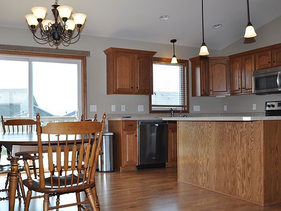 Welcome home to a FOUR BEDROOM HOME in NORTH BISMARCK featuring an OPEN FLOOR PLAN, cathedral ceilings, CENTER ISLAND BREAKFAST BAR & STAINLESS STEEL APPLIANCES. The dining room leads out to the DECK and LARGE BACKYARD with PATIO. The MASTER SUITE features a walk-in closet and Master Bathroom. The lower level you will find a very spacious DAYLIGHT FAMILY ROOM to enjoy, 2 more bedrooms and another full bathroom. The spacious HEATED triple car garage has HOT & COLD WATER, FLOOR DRAIN & attic ACCESS with a pull down ladder. There is a SPRINKLER SYSTEM, a SHED and RV pad. A MUST SEE.