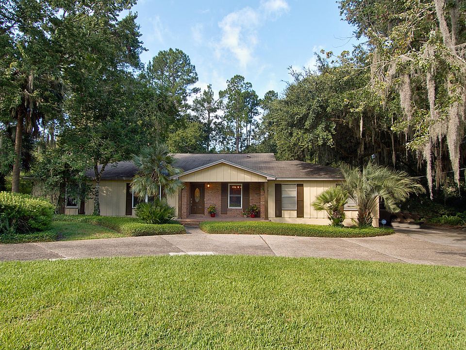 Pictures coming soon. Wonderfully updated and open golf course community home in Gainesville Golf & Country Club. Renovations include beautiful Brazilian cherry wood flooring, new windows, brand new kitchen w/antique white cabinets, granite countertops, gas stove top, large center island, subway tile backsplash and more. Addition of a spacious family room off the back of the house overlooks water fountain and koi pond in backyard. Privacy abounds with landscaping and dense woods in the back and no neighbors on one side. Lots of living space with spacious living room with wood burning fireplace w/beautiful marble surround. Kitchen is center of the home with open concept to living, dining and family rooms. Workshop in garage and additional carport built to store RV. Plenty of parking. Join the club and enjoy golf, tennis, pools, playground and restaurant. Minutes from shopping and restaurants, Shands/UF and I-75.** Under Contract - Backup offers accepted **