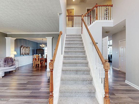 Get ready to be amazed! This spacious house features large living areas including a 2 story great room adjacent to the kitchen with fabulous windows and gas fireplace. Easy-clean flooring throughout the first floor! Enjoy cooking with plenty of cabinet and counter space plus a pantry. Upstairs are 4 bedrooms; the king-sized primary offers a spacious bath with separate tub and shower and large walk-in closet. 2nd floor laundry! Down the stairs the lower level will wow everyone with the intricate finishes, from artistic flair with the drywall and tiled floors to the curved office area and adjoining media/family room! Built in- playhouse! Enormous privacy fenced yard offers plenty of room to roam plus a patio! Quiet location in a cul-de-sac - this house is truly a ''must see''!