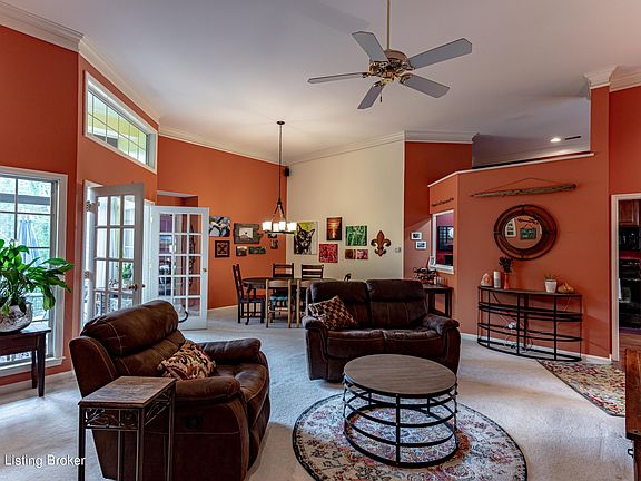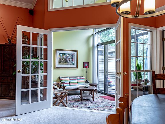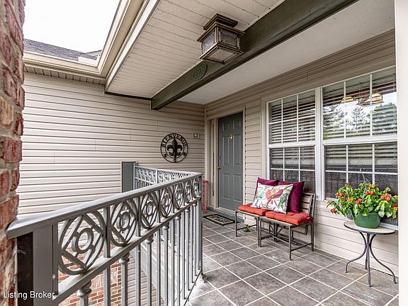 Are you looking for condo life but want privacy and beautiful views? If so check out this breathtaking 2 bedroom, 2 bath second floor condo with a 2 1/2 detached car garage in The Woodlands of Harrods Creek! This private community offers tennis/pickleball courts, a swimming pool, clubhouse, wooded walking trails, an outdoor fire circle and most importantly is situated along a bluff of Harrods Creek. Features include an open floor plan, tall ceilings, large windows throughout, french doors that lead into a stunning four seasons room, that then leads out to a private deck with views of woods, green space, and the creek. Cherry cabinetry and granite countertops in the kitchen and the primary bedroom has an en suite bath that is large and light filled! This one won't last! Call today!