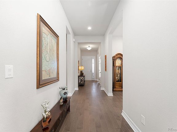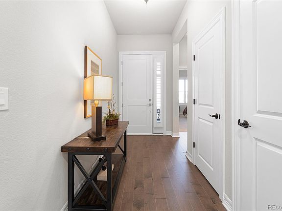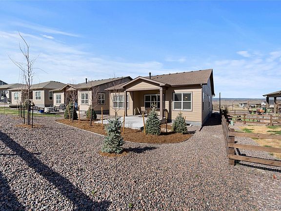 Welcome to Montaine, a 55 and over community located in Castle Rock. This charming Whitley model ranch style home boasts 2 bedrooms, 2 full bathrooms, and a study, perfect for those looking to downsize without sacrificing comfort or style. The home is only 6 months old, meaning it has all the modern amenities you could want, including energy-efficient appliances and a spacious open floor plan. Upon entering the home, you'll be greeted by a light and bright living room that's perfect for entertaining or just relaxing with a good book. The kitchen features stainless steel appliances, quartz countertops, and plenty of cabinet space for all your cooking needs. The adjacent dining area provides the perfect spot for enjoying meals with family and friends. The primary bedroom is a true oasis, featuring an en-suite bathroom with a walk-in shower and a spacious walk-in closet. The second bedroom can serve as a guest room, home office, or whatever your heart desires. The study is a great additional space for working from home, hobbies, or as a cozy reading nook. The family room is the perfect gathering spot, featuring built-in cabinets, a cozy fireplace, and plenty of natural light. It's a great place to relax and unwind after a long day or to enjoy quality time with loved ones. Plantation shutters provide a touch of elegance and privacy to the room. Step outside and enjoy the Colorado sunshine from your own private extended patio, perfect for hosting outdoor gatherings or just relaxing with a cup of coffee. The new landscaping adds a touch of natural beauty and privacy to your outdoor oasis. Take advantage of the community's amenities, including pickleball courts, clubhouse, fitness center, and outdoor pool. With easy access to shopping, dining, and entertainment, this home is the perfect combination of convenience and comfort. Don't miss your opportunity to own this stunning home in the highly desirable Montaine community. Why wait to build?