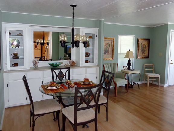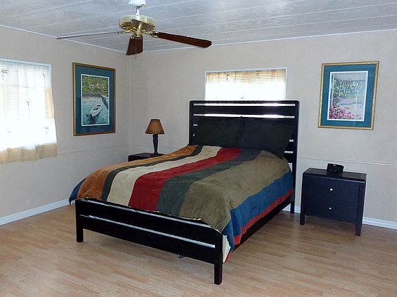 ***EXCLUSIVE AND SHOWN BY LISTING AGENT ONLY. BEAUTIFUL HOME IN LAND LEASE COMMUNITY*** Spacious popular floor plan with heart-of-the-home kitchen perfect for entertaining! All new appliances 2014, new A/C 2016, new high end laminate flooring throughout in 2018, and new shingle roof 2019. There is a screen enclosed extra-large utility shed with 2014 Haier washer and dryer, backyard patio and wider and longer than normal driveway for all of your toys. This great home is located in Camelot Lakes Village, a beautiful, gated, resort-style 55+ community where your monthly lot rent of $1147 includes water, sewer, trash/recycling curbside, lawn maintenance and taxes. Very nice clubhouse has a computer/internet center, library, billiard room, state-of-the-art fitness center, heated pools, whirlpools, saunas, lighted tennis courts and shuffleboard, bocce and pickle ball courts and 3 corn hole stations. All shopping needs, great restaurants and entertainment are just minutes away via quiet back roads or easy I-75 access. Tired of having everything at your fingertips? Take a 7 mile drive to the beautiful white sand beaches of Siesta Key. Throw out a line, take a dip or enjoy an energizing walk along the shore. A never ending supply of quaint shops, top restaurants and the nicest people you'll ever meet! There are 2 side entries to this home, a guest entry to the bright and airy living room (19 x 24) or enter from under the carport through a built-in office hallway with 2 closets that leads directly to the kitchen. The dining area has a brushed nickel chandelier and a built-in lighted china hutch perfect for extra storage or displaying your collectibles. WOW! This open kitchen with center island cooktop and breakfast bar is a dream for entertaining. Beveled edge granite look laminate countertops, tile backsplash, double sink stainless sink with disposal, lighted pantry with spice rack, top of the line easy clean black Whirlpool and Thermador appliances installed in 2014 and includes French door refrigerator, built-in oven and microwave and dishwasher. Off to the side is a den/family room with wall mount for flat screen TV, wet bar and large sliding doors overlooking the furnished enclosed porch furnished with rattan couch, wicker and glass top table with two chairs. Backyard access through screened door. Quick dry indoor/outdoor carpeting. Spacious master bedroom has nice door moldings, quality ceiling fan and mini blinds. 11 x 11 en-suite with double sinks, walk-in closet with seating and safety rail, garden tub, walk-in shower and tile look vinyl flooring. The guest room has another walk-in closet, ceiling fan and access to guest bath with tub/shower combination. (Golf cart pictured is not included)