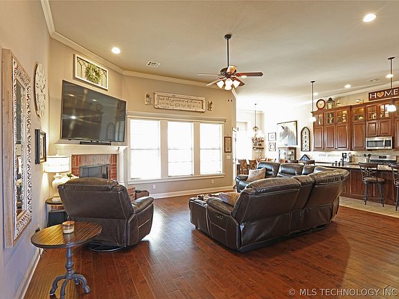 Open living space combines Living Room, Dining Room and Kitchen with 12' ceilings. Granite counter tops throughout. Fully covered Patio with gas log fireplace.