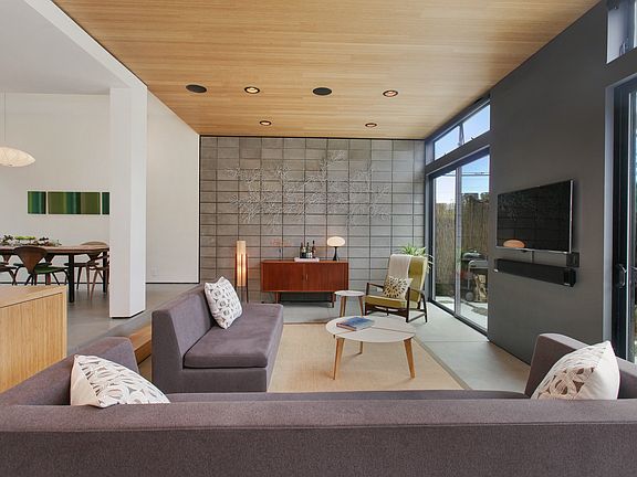 Simpatico Homes partnered with Robert Swatt FAIA of Swatt Miers Architects to fuse custom-quality architecture and design with modern day sustainable building and prefabrication methods. The result was the award-winning, designed to achieve LEED Platinum, Simpatico Prefab Net-Zero Energy Home.This 2,083 square foot home (per tax records) features 2 en suite master bedrooms, 3 full bathrooms several flexible sleep / work spaces, walls of dual pane glass creating passive solar, numerous skylights, energy star appliances, Heath kitchen tile, radiant heated floors, a living roof, a rain water catching irrigation system, high efficiency LED lighting, low flow water fixtures, solar electric and water heating, low VOC paint, FSC ipe hardwood decking, a 2 car garage, and more.The open floor plan offers the best of indoor/outdoor California living and serves as the ideal environment for both relaxing and entertaining. Outdoor space abounds with this unique home which features 2 private outdoor patios, separate decks off of each of the bedrooms, and an expansive rooftop deck with views of the bay and hills.It is a rare opportunity to have this level of custom-quality architecture at this price in the Bay Area. The home has been featured in Dwell Magazine as a thoughtful, innovative green LEED Certified home and has received additional recognition and press for its architecture and environmental achievements.