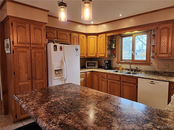 This beautiful village home has a whopping 1.5 acres, a gorgeous front porch and a large, detached garage. Inside you will find stunning hardwood floors, and an updated kitchen with counter height peninsula. A full bathroom, mudroom and first floor laundry complete the first floor. The two-story front foyer takes you upstairs where you will find three bedrooms, another full bathroom and a storage room. New Natural gas furnace and hot water heater installed in 2019. Seller had a home inspection and radon testing completed in December, 2022 available to prospective buyers.