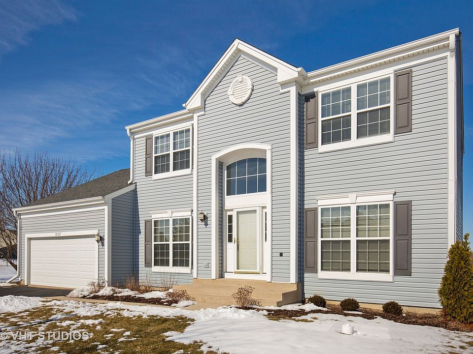 SO MUCH NEW HERE! Everything your family could want and more. Beautiful brand new Hickory flooring throughout first floor, freshly painted, study with french doors, 9 ft. ceilings. New granite, sink and new all stainless steel appliances in the kitchen, along with a large pantry with custom built-ins. Spacious master suite with W/I closet and bath with double sinks, large shower/tub and storage, too. Finished basement has a full bath w/ jetted tub, large bonus room with custom built-in bookcase, along with 5th bedroom. Location is fabulous, very private, backs up to 8 acre open space sellers don't own, but get to enjoy. Close to shopping, schools and Highways! Huntley schools.