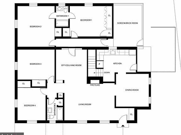Two fireplacesTrue four bedroom homeHardwood floorsOffice or homework areaLouvered glass windowsFormal dining roomThree-season screened brick room
