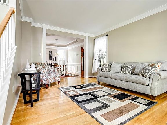 Beautiful transitional on a private wooded lot in Foxcroft! This 5 BR 2.5 BA home is move-in ready and recently updated by the owner. Enter into 2 story foyer followed by formal living and dining rooms with hardwood floors and custom trim. Kitchen has new Corian countertops, new stainless steel appliances, tile backsplash, farm sink and faucet, and laminate wood flooring with breakfast nook. Kitchen is open to the family room with wall of windows and gas fireplace. Open staircase leads to 5 bedrooms with master suite including en-suite bath, double vanity, large soaking tub, separate sitting area, and tray ceiling! New 24x20 multi-level deck installed in 2019, overlooking the private wooded rear yard. Roof, windows, HVAC system, and water heater all updated within the last 5 years. Additional features include paved driveway, side load 2 car garage, and great location in Foxcroft with walking paths, tennis courts, pool, and back door trash service!