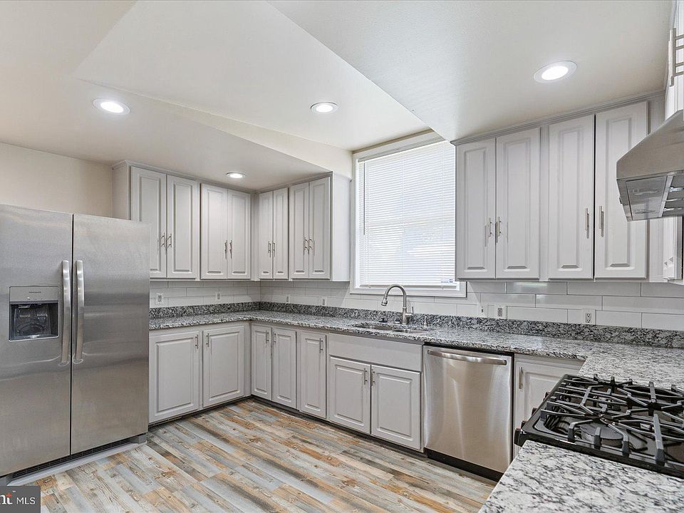 The search is over! This updated beauty has a large corner lot & ample parking. This single-family home has gleaming hardwood floors & fresh paint throughout. The kitchen with granite countertop was totally remodeled in 2022, perfect for your cooking needs. The bedrooms provide tons of space & storage. Comes with new appliances, blinds, ceiling fans, garbage disposal, and security doors. Fresh carpet & new lighting throughout the home also gives this space a fresh makeover so it's move-in ready! Convenient to Northern pkwy, Reisterstown Rd & 83 makes for an easy commute. The only thing missing is you!