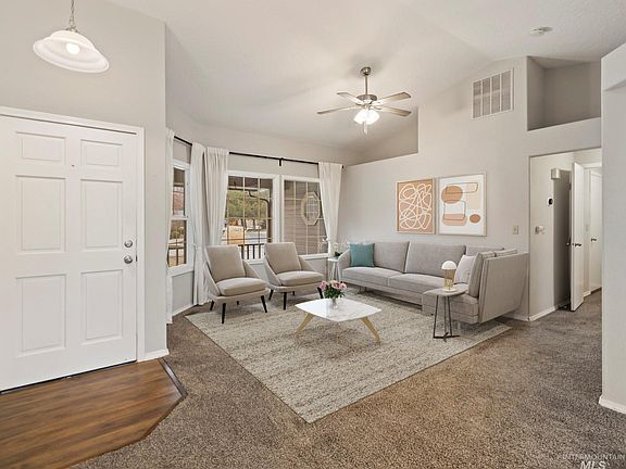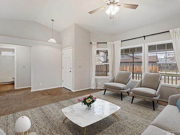Charming Columbia Village home, in a prime Boise location near everything you could want & need! Enjoy the open concept floorplan with soaring vaulted ceilings, ample natural light, modern engineered hardwood flooring, and a stylish kitchen boasting a breakfast bar, subway tile backsplash and stainless steep appliances. Relax in one of the 3 spacious bedrooms, including the primary suite with a walk-in closet and private full bath with tile shower and double vanities. Outside is a private backyard featuring a partially-enclosed patio, good size lawn space, and a sprinkler system. Columbia Village features world-class amenities and is built around the 161-acre Simplot Sports Complex... Enjoy tennis & racquetball courts, an exercise room, four outdoor swimming pools, Disc-golf course, RV rental storage with in the sub. A rentable 90-person meeting room with a kitchen, soccer/baseball fields. The community is also conveniently located near The Oregon Trail Reserve, Highway 21, & The Boise River Greenbelt.