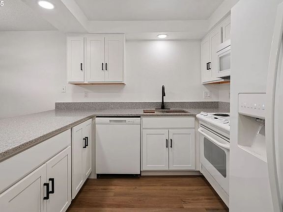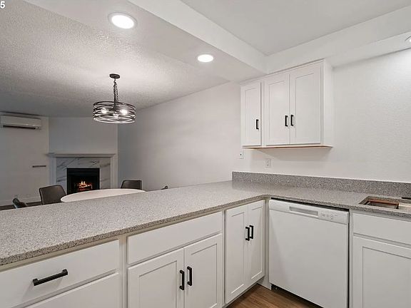 freshly remodeled 2 bedroom condo. It has new flooring, paint, kitchen, appliances. Cozy wood burning fireplace. This end unit has privacy and seclusion. Single car garage and assigned parking space. Includes water, garbage, sewer. Low utilities.