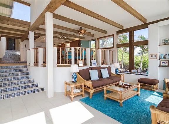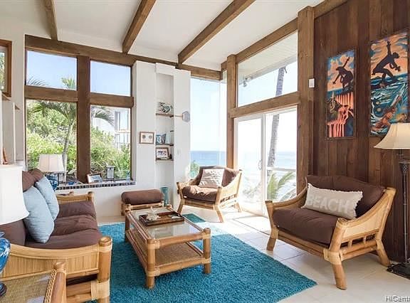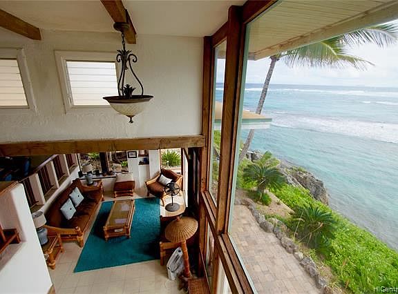 STUNNING PANORAMIC OCEAN VIEWS & KO'OLAU MOUNTAIN VIEWS from this beautifully furnished 5 bedroom 4 bathroom Laie Point estate. This one-of-a-kind 2 story home sits on a private oceanfront flag lot overlooking the ocean. Beautiful architecture includes open beam construction and a very nice Mediterranean feel, as well as an interior 2nd floor wading pool with waterfall to a wading pool on the first level. Granite countertops, stainless steel appliances, garage. Beautifully and fully furnished. Furnishings negotiable. Live oceanfront with no flood insurance required! One of the most beautiful ocean and mountain views of any home on the market right now. Very easy to view on short notice. Welcome home to paradise!