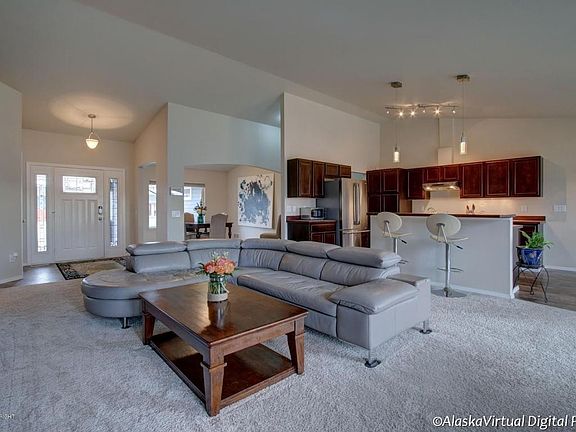 This tastefully-designed ranch home is begging to host all your future parties! The open kitchen with informal dining, over-sized living room, open formal dining area, and deck access all allow for seamless entertaining. The wall of south-facing windows flood the house with sunlight and the vaulted ceilings bring a feeling of airiness in. Oh, its also a hop, skip, and jump away from Kincaid Park!