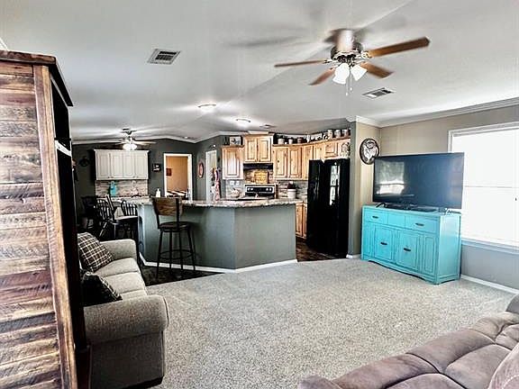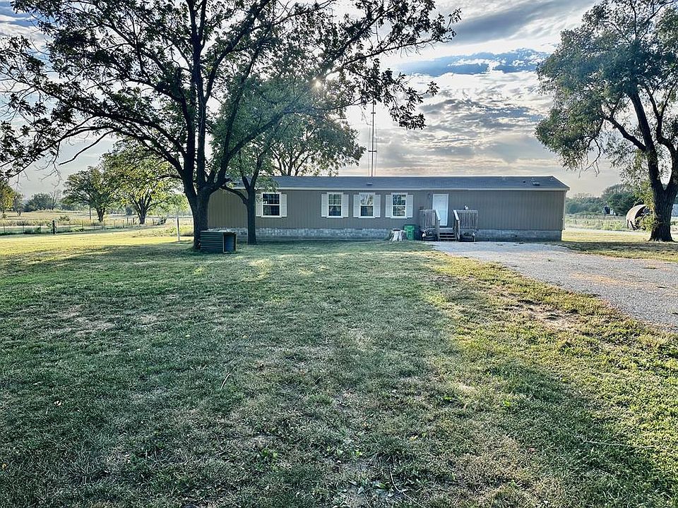 Located just 1/2 mile off of HWY 169, on 26 acres- this home feels like a retreat. This custom manufactured home has 3 bedrooms with spacious closets and 2 full bathrooms with new carpet through the home. The beautiful open kitchen hosts several new items including a new granite composite kitchen sink, garbage disposal, Whirlpool dishwasher, Whirlpool double oven, Whirlpool microwave/range hood (not yet installed but will stay with house). The coffee bar adds the homiest touch and the closeted pantry stores all your baking items so neatly! New ceiling fans were added in each room! The 30x50 barn has new spray insulation and is equipped with overhead doors on both ends and a large livestock stall inside. It has multiple outlets located all around the barn as well as a 220 amp outlet. The 12x24 shed is the perfect place for all your storage needs! There is a 30 amp RV hook up. Internet tower in the west yard was installed by Wilco Wireless and is owned by sellers & transfers with house. High-speed wifi service is exclusively for this property. A water spigot is in the pasture for watering livestock etc. A serene pond sits behind the home and is stocked with growing bluegill & catfish. Wildlife is seen on property regularly: quail, deer, turkey, heron, Canadian geese, owls even pheasant and an occasional bald eagle has been observed! The meadows are cross fenced and boast a Native mixed grass, with plenty of trees all around for shade and shelter.