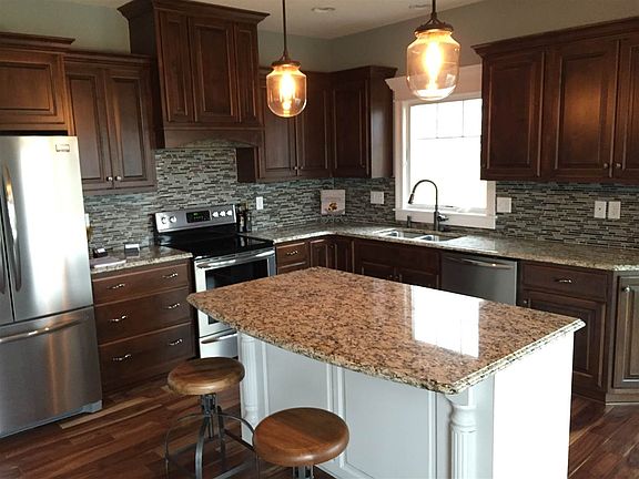 Another custom built home by Huth Conrad Custom Build. Andy Huth and Roger Conrad have been building custom homes in the Fort Wayne area since 2004. They build with impeccable attention to every detail. This open floor plan offers nearly 2000sqft on the main level with beautiful hardwood flooring. The kitchen includes granite counter tops and an island with a drawer microwave. The large master suite on the main level includes backlit tray ceiling and the master suite offers a walk-in shower with dual shower heads (rain head), an air jetted tub and an impressive master closet with natual lighting. There are two bedrooms on the upper level with full bath and two vanities. The basement is finished and includes a large recreation area, another bedroom with a walk-in closet and full bath. There is also a large storage area and mechanical room that has been rough plumbed for a bar. Energy efficient Geothermal heating and cooling. Eight foot high garage doors. Stamped concrete covered patio with iron railing.