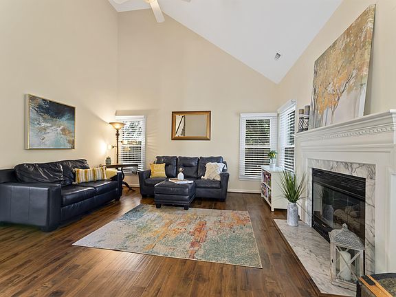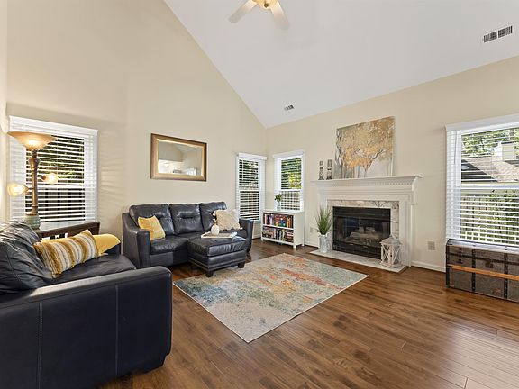 Beautiful home definitely lives larger than the square footage shows! 3Bdrm/2.5 Bathroom home in Harrington Grove! Main level Master Suite with bay window offers extra sunlight; The family room with vaulted ceilings definitely makes the room look spacious...yet inviting with the gas log fireplace and LVP floors! the secondary bedrooms on the 2nd level have a full bath to share and great closet space! Backyard is newly sodded and fenced for extra privacy...all this in a cul de sac lot and mature trees for nice shade in the warm months!1 car garage but double wide driveway!