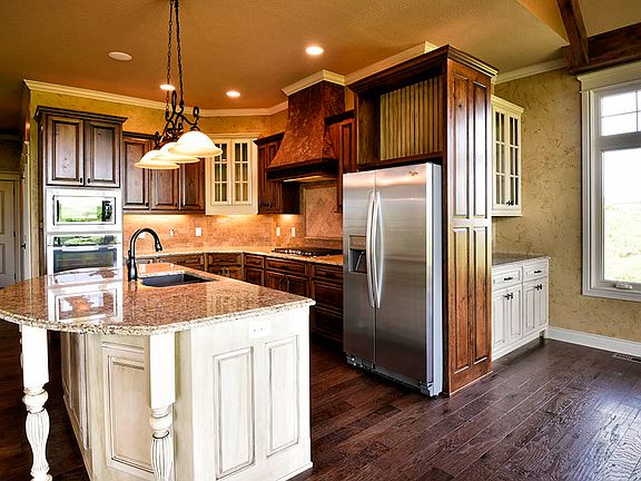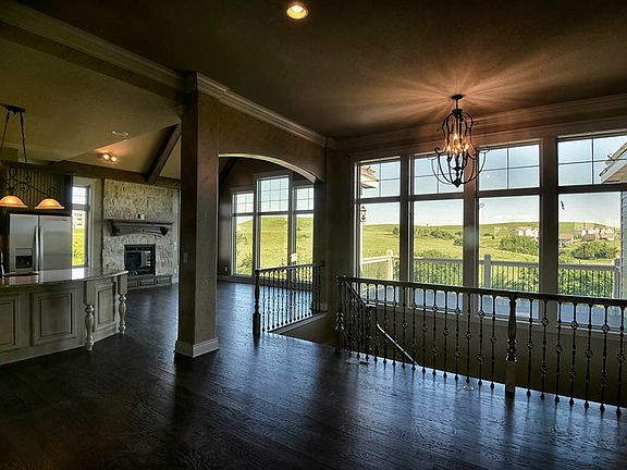 HUGE PRICE REDUCTION! ENJOY GLORIOUS VIEWS OF THE HILLS AND GOLF COURSE from this incredibly gorgeous 4,952 sq ft new build constructed of native limestone, stucco, and rough-sawn cedar by Dennis Sumner of Enclave Homes, LLC. This five-bedroom 4.5 bath luxury home features 10', 11' and 19' vaulted ceilings in a gracious main level open plan that includes a state-of-the-art kitchen with rich cabinetry, formal dining, vaulted hearth room-dining with fireplace and a spacious living room enhanced by walls of windows overlooking the golf course. The large main level master bedroom features 11' ceilings, two huge walk-in closets, oversized zero-entry ceramic shower, whirlpool tub, and rich cabinetry that enhances the beauty of the dressing room-master bath. The main level is complemented by a study accented by French doors near the spacious entry. A powder room, large laundry room with cabinetry and deep sink, and beautiful trex deck complete the function of the main level. The spacious family room in the lower walkout level features beautiful rich cabinetry in an expansive wet bar and extraordinary entertainment center with built-in bookcases. Adjoining the family room in this lower-level open plan is a recreation room that is accessible to a lovely covered patio. The lower level is complete with an exceptionally spacious bedroom with private shower bath, two additional bedrooms and connecting full bath with two vanities, a separate half bath in the hallway that is convenient to the family room and adjoining recreation room, and an enormous amount of unfinished storage. This exceptional property will be fully landscaped and comes with sound, Internet wiring, views and sunsets that will take your breath away.