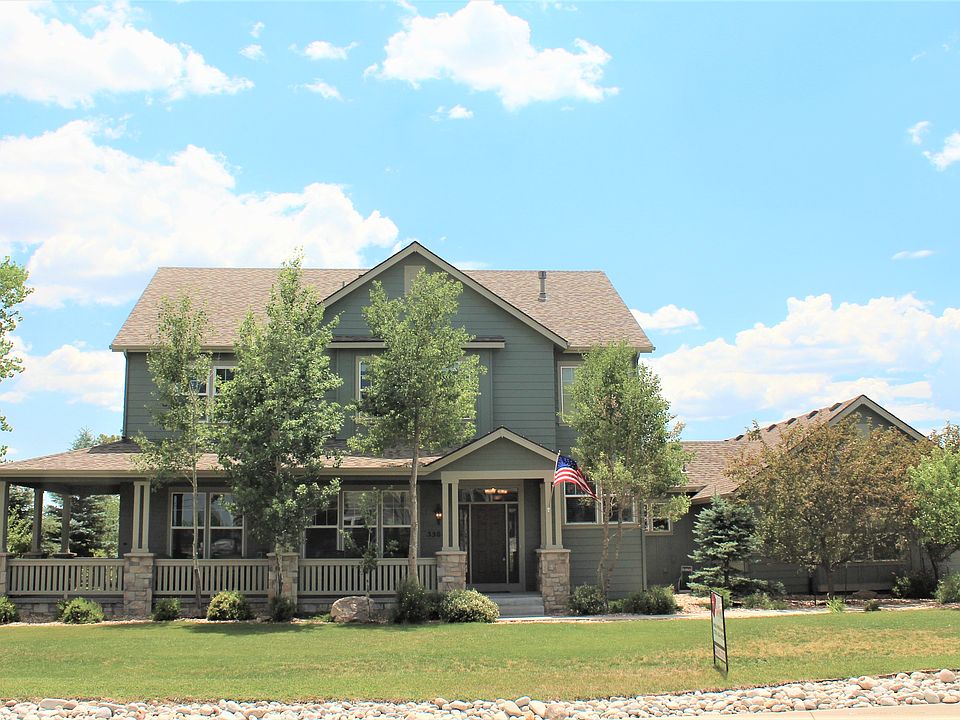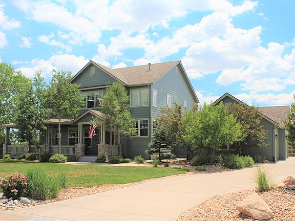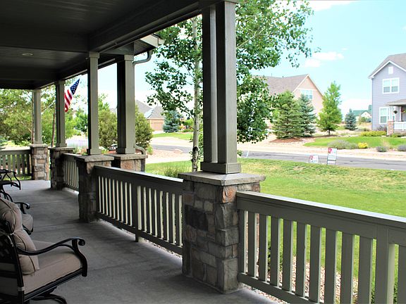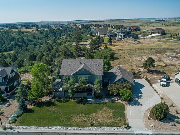 Sprawling traditional home with BIG welcoming front porch on almost 1 ARCE in Castle Rock! Welcome your guests in the large foyer, open to the main floor which boasts a great, open floorplan. Focal point is the exceptional double sided fireplace with hearth seating area and wet bar. Large, well planned kitchen with walk-in pantry and lots of windows. Kitchen island with seating and stainless steel appliances. Open living area, flooded with light is great for entertaining! Main floor bedroom with French doors is adjacent to 3/4 bath, perfect for guests or home office. True mud room with basin sink off 4 CAR, oversized garage! Step out to your professionally landscaped back yard to the concrete patio with built-in gas fire pit. Back yard is fully fenced and backs to open space, hike to canyons. Upstairs, you'll find a large open loft, guest room with ensuite, 2 bedrooms sharing a quaint Jack-n-Jill bath! Master bath has great views including Pikes Peak, cozy fireplace and luxurious bath.