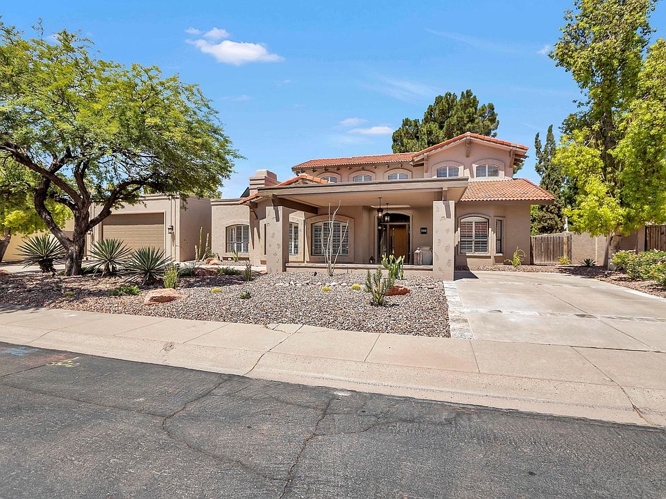 Beautiful Santa Barbara home in gated Privado Village - that's the way to live at the heart of Scottsdale. Remodeled inside and out by thoughtful property stewards. Beautifully landscaped. Family room features wood beams and multi-slide doors with a great view to the gorgeous pool and backyard. Plantation shutters and 9 and 10 ft ceilings throughout. Spacious guest bedrooms are separated by a Jack & Jill bath with Vigo Gris tile encased shower. Spacious and elegant master quarters have 3 walk-in closets, a private balcony with partial view of Camelback mountain, and a cozy fireplace. Master bath finishes include Italian Bianco Staurio marble in the shower and tub surrounds. Guest bath includes direct access to pool and a Vita Elegante Grigio tiled shower.