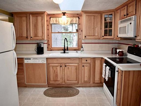I would like to invite you to your new happy place. This year round Northwoods cabin/home is bright, welcoming, and great for entertaining. The spacious living room enjoys a wall of windows, cathedral ceiling, wood burning fireplace, ceiling fans, & side door that leads you to the multilevel decks, sand frontage & fire pit. There are two bedrooms, hickory kitchen cabinets, main floor washer & dryer, & updated full bathroom. You will love the two car detached garage, extra storage, with a new insulated bunk house finished off with a door to the lakeside deck. This property has a storage shed at waters edge, paved driveway, new metal roof on house and garage, new drilled well, some new windows, updated plumbing and electrical.