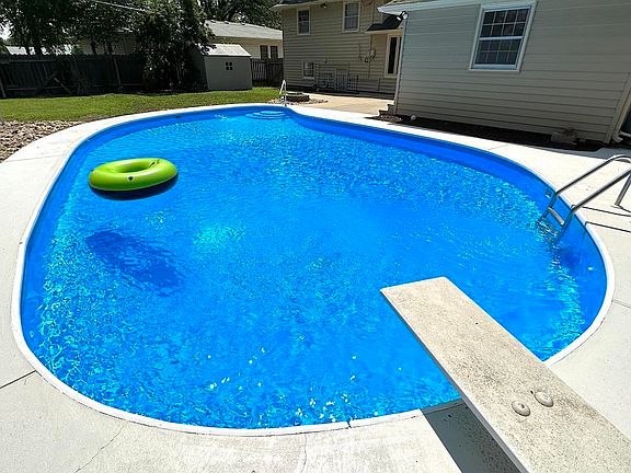 Location Location Location with a Fully Refinished Pool! This is one immaculate house that has so many entertaining options. The home has 3 living areas, with multiple upgrades in the recent years. Some of the items include, Completely refinished Pool in June 2023, New Custom Wood Cabinets in Kitchen with granite countertops, refinished floors, new carpet, garage completely refinished and 3 car tandem garage added, new sewer line in 2020 and new HVAC in 2019. Gas FP with built-in cabs in hearth rm, 3 BDRs up with main BA and large master with attached full BA +1/2 BA on main. Slider in large fam rm to access the patio, fire pit and in-ground diving pool. shed, vinyl siding, extra parking, rolling shutters on west. This is one of the nicest homes in SW Topeka currently available