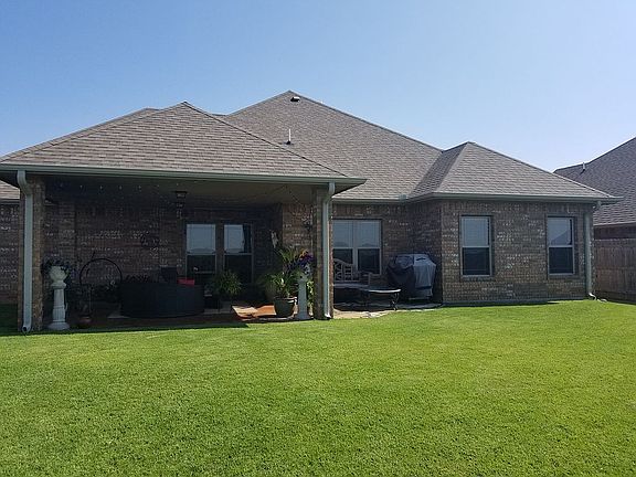 Beautiful home located on the west side of Lawton. This great home offers 4 bedrooms, 2.5 baths and 2 car garage. In the great room you have wood plank tile floor, fireplace, and pan ceiling. The kitchen has granite countertops, breakfast bar and stainless steel appliances. The master suite is very spacious and ensuite bath includes double vanity, whirlpool tub, separate shower and huge walk-in closet. The secondary rooms are a great size too. Out back you will enjoy the massive covered back patio with panoramic views. The yard is meticulously manicured and landscaped.