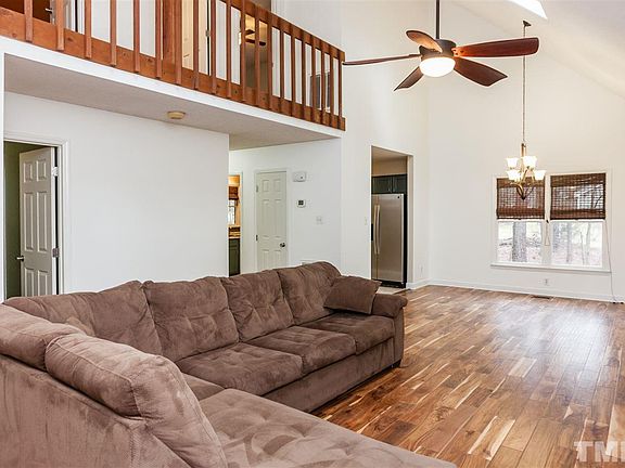 Gorgeous 2 story home recently renovated with an oversized screened in porch on a large flat fenced in yard located on a cul-de-sac street! Home features high ceilings, skylights, beautiful new hardwood floors, and bedrooms both upstairs and downstairs with full en suite modern tile bathrooms! Enjoy the private wooded views and low maintenance yard complete with a fire pit for evenings under the stars. Huge detached workshop for all of your tools, toys, and tasks! Close to I40, RTP, and Southpoint!