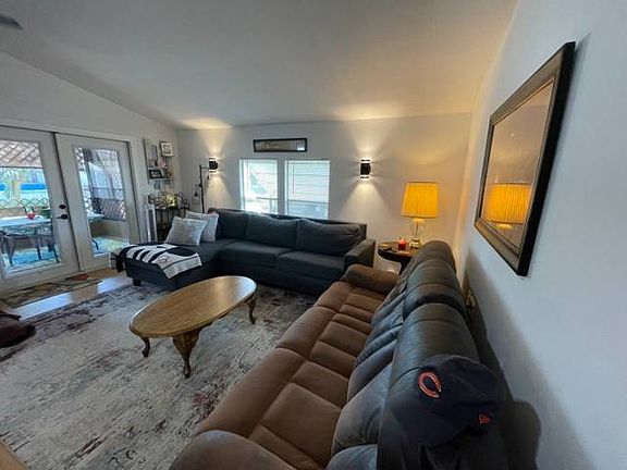 5508 Wind Sail, Bradenton FL 34207 Windmill Manor 55+ Mobile Home Community This mobile home is on a rented/leased lot. This 2BR/2BA mobile home is in great condition and has been well-maintained with custom updates. The home is located on a cul de sac with limited traffic. The home is being sold partially furnished. It's ready for you to move in and make your own today. There are vaulted ceilings, laminate and tile floors, and sheetrock walls in all the right places. The kitchen has custom cabinets, upgraded countertops, a custom backsplash, and stainless and black appliances. There is a formal dining area adjacent to the kitchen with a custom built-in cabinet for your treasures. The open living room, dining room, and kitchen area open to a front set 10 x 24 screened lanai through French doors, making for great living, dining, and entertaining. The owner's bedroom has 12-inch tile and a full bath ensuite. There is an updated single sink vanity; and a walk-in shower along with updated fixtures. The 2nd bedroom has laminate flooring, a ceiling fan, and two closets. The hall bath has 12-inch tile, an updated single sink vanity, and a tile shower/tub combination. There is a 2+ car carport and a 12 x 12 screened carport lanai with a shed off the back that houses the washer/dryer (included in the sale). The home has landscaping in the flower bed areas, providing great curb appeal. The lot rent is ~$1,150/month. The monthly lot fees include water, sewer, cable, lawn, trash, a clubhouse, and a pool. Windmill Manor is a senior community, age 55+, in beautiful, sunny Bradenton, FL. It is conveniently located on State Route 70 just minutes from shopping and I-75. There are numerous amenities for residents to enjoy, including a swimming pool with pool furniture, and a clubhouse for residents to enjoy. Florida MH Sales, LLC cannot guarantee or warrant the accuracy of any property's information, measurements, or condition. Measurements are approximate. All homes are sold "as is" and a personal or professional inspection is encouraged. Additional personal property conveys 'as is' with no value. Lot rent is set by the community and is subject to change. All buyers must be approved by the community before closing on a negotiated sale contract.