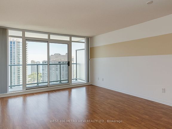 Immaculate one-bedroom suite featuring the best layout in the building. Bright and spacious with floor-to-ceiling windows, an open-concept kitchen, and sleek laminate flooring throughout. Enjoy two walkouts to a large private balcony. Conveniently located just steps from the subway, TTC bus station, shopping, restaurants, and all amenities. The building offers 24-hour concierge/security, plus one parking spot and one locker included.