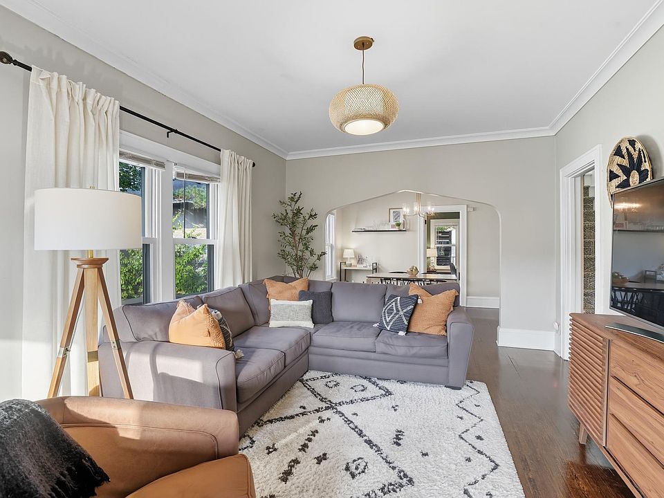 This updated South Minneapolis bungalow combines charm, space, and smart updates. The front porch welcomes you into a main level with hardwood floors, two bedrooms, and a spacious living area that flows into a large, bright kitchen with ample cabinetry, stainless steel appliances, and plenty of natural light. Upstairs offers a generous bedroom plus a versatile flex space—currently a 25x17 walk-in closet—that could easily serve as an office or lounge. The lower level features a beautifully renovated 3/4 bath with tiled walk-in shower, laundry, storage, the 4th bedroom, as well as space that you could finish off for an additional family room. Outside, you’ll find a rare South Minneapolis treasure: a recently sheet-rocked and insulated 3-car garage. In the last four years, updates include a new roof, furnace, gutters, lighting, paint, a full basement bath renovation, and more. With restaurants, parks, a fitness center, and more just blocks away, you’ll love the lifestyle this home offers. Come see it today!