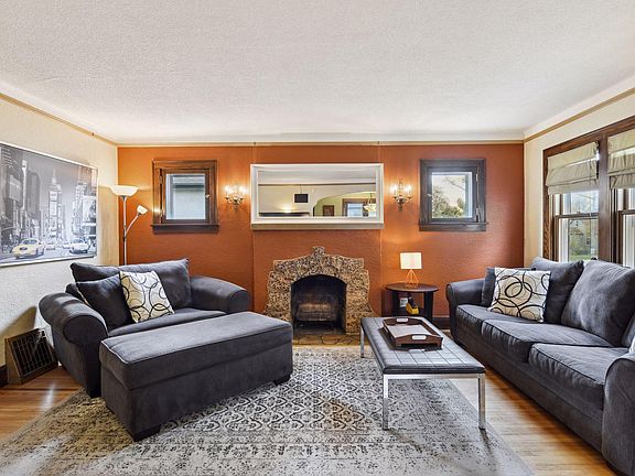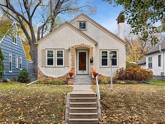 Be the next owner of this super-cute Tudor style home! Beautiful original details include coved ceilings, tutor style archways, beautiful plaster walls, hardwood floors, a gorgeous decorative fireplace, and coved ceilings. The main floor has an adorable, updated kitchen, two ample bedrooms, and a stunning vintage full bath. The lower level has good ceiling height, a half bath, a nice family room and a cool wood-stove style gas fireplace. An egress window could easily be added to create an additional bedroom. The upper level has two pleasant bonus rooms, currently showing as an office and a playroom. The exterior is low-maintenance stucco, and the windows have been updated as part of previous MAC updates. Two individual garages offer a total of two spots, plus room for storage. Great walkability to a diverse array of restaurants, schools, parks, coffee shops, a skate park, public transportation, Lake Nokomis, the parkway, the falls, as well as easy access to freeways. Don’t miss it!