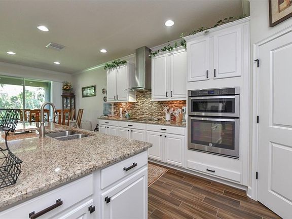 Tastefully done 2017 construction with over 3,500 sq ft of living space plus 4 car garage in Gated community of Oakleaf Hammock. This home has it all - 5 bedrooms, 3.5 baths, separate office, loft space & oversized bonus room, as well as full 4 car garage for plenty of storage! As you pull up to the home, you will notice the oversized paver driveway, professional landscaping, & RING system exterior security cameras. Inside the home is open concept living/dining/kitchen areas featuring porcelain wood tile, crown molding, & high ceilings making it feel open and bright. Dream kitchen w/ 42" custom cabinets, granite counter tops, tile back splash, stainless steel appliances electric cooktop w/ vent hood, built-in wall oven/microwave, top of the line 4-door refrigerator, & closet pantry. Breakfast bar open to dining space/living room with surround sound. Double sliders to outside - perfect for entertaining! Spacious Master bedroom is downstairs w/ spa-like en suite master bathroom featuring granite double sink vanity, huge seamless glass walk-in shower w/ DUAL shower heads, & dream walk-in closet. First floor also features french door office/flex space, half/powder bath w/ linen closet, laundry room. Second floor has large loft area plus extra bonus room for plenty of added living space. Two 12x12 bedrooms are Jack/Jill style with granite vanity. 2 bedrooms share a 3rd bath w/ granite vanity. Covered porch, yard has plenty of space for pool! Low fees and won't last long! Close to outlets, restaurants, I-75!