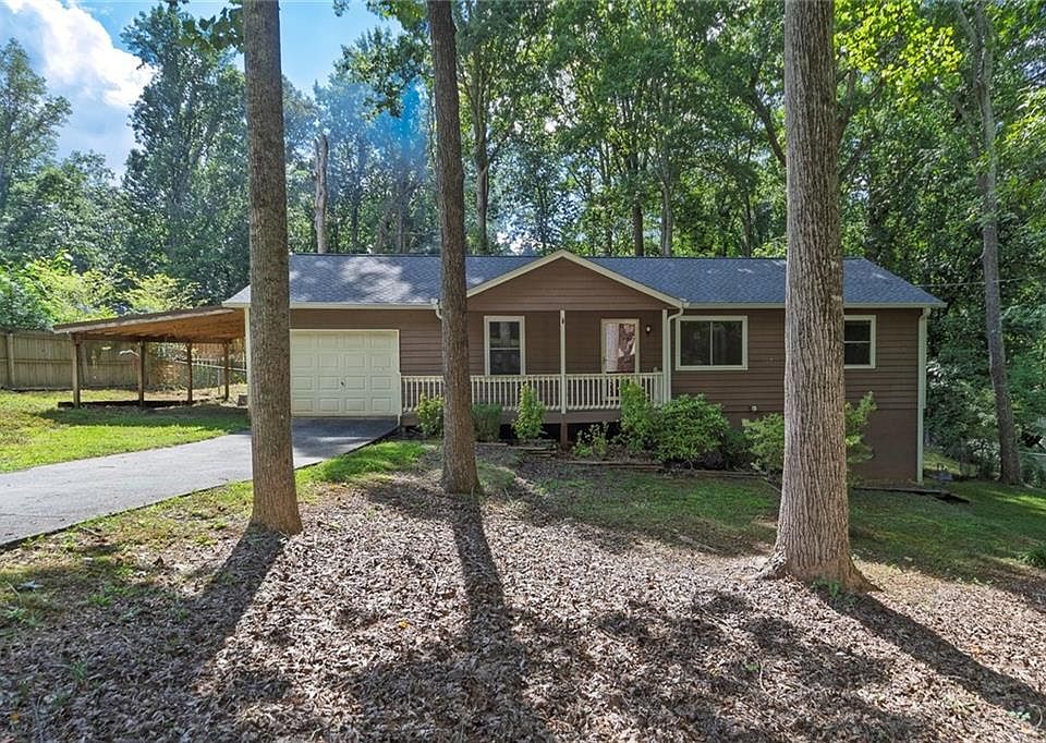 3 bedroom, 2 bathroom ranch-style home nestled on a quiet dead-end street. Sitting on a very large, level lot with mature trees, this property offers privacy, space, and no HOA restrictions. Inside, you'll find fresh interior paint, brand-new carpet, and hardwood floors in the family room. The updated kitchen features granite countertops and stainless steel appliances. Enjoy peace of mind with new energy-efficient windows throughout the home, offering comfort and savings year-round. The home also includes a large mud/laundry room, 1-car garage, covered carport, and a boat door in the partially finished basement, providing tons of storage or workshop potential. Recent upgrades include a 2-year-old water heater and a roof approximately 5–7 years old. Conveniently located just off Highway 92 between I-75 and I-575, you're close to shopping, restaurants, and more, while still enjoying a peaceful, tucked-away setting.