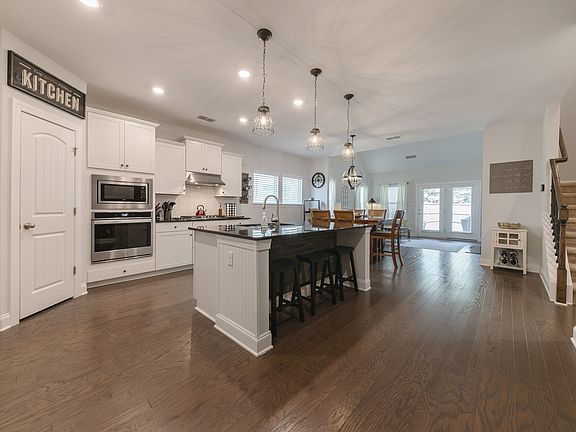 This home has many upgrades and is like new! Beautiful hardwood floors flow through the entry foyer into a large open floor plan. Deluxe kitchen has granite, a gas range with hood, wall-oven and built in microwave and large pantry. Open dining area connects the kitchen to the large living room with gas fireplace. Massive first floor owner's suite with gorgeous tile floors and shower, and door to covered porch and fenced-in yard!! Kids will love 2nd floor living room, 3 beds and a full bath!