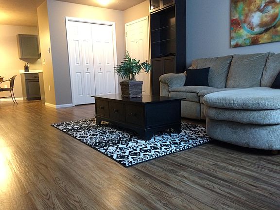 Fireplace and garage with opener! Spacious upper level town home, with garage included in rent. Gas fireplace and wood look hard floors make this truly a lovely home! Gorgeous blue accent wall, moderncplor pallet. Carpet in bedroom only. Full size washer & dryer in your own laundry room. Outside entrance, this is an upper unit in a 2 floor building. Pet friendly building. East side location, just a few minutes from shopping at Dawley Farms. Owner pays the water, sewer, trash, lawn & snow.